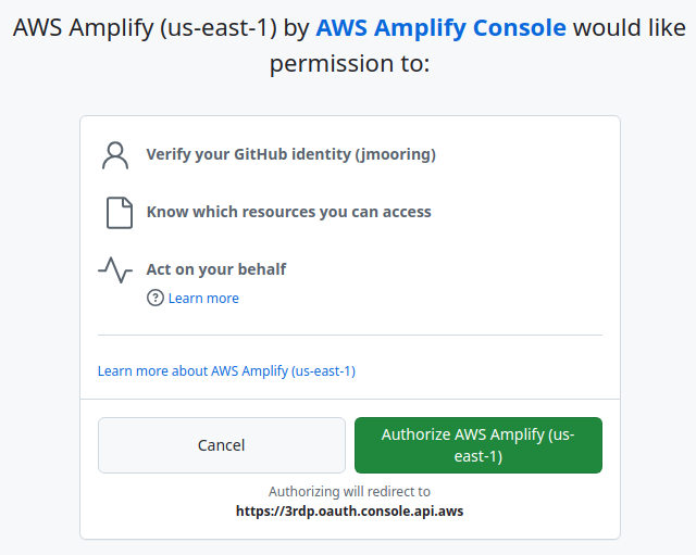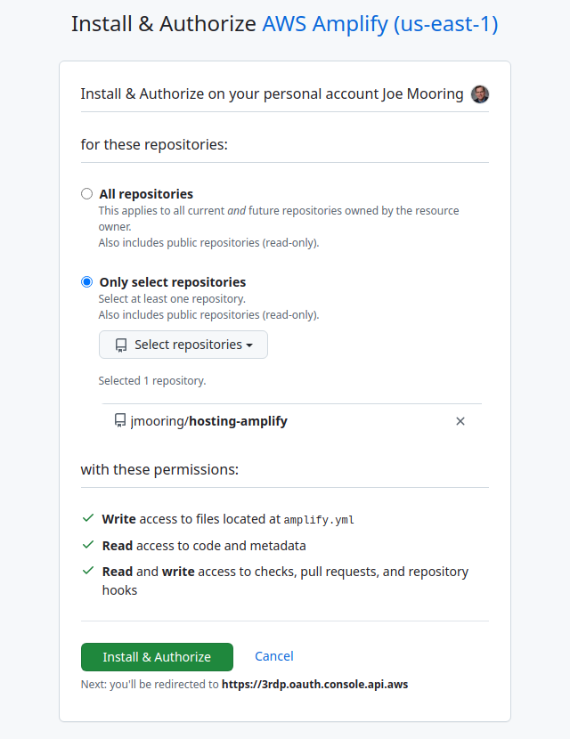 - 授权 AWS Amplify 访问您的 GitHub 账户。