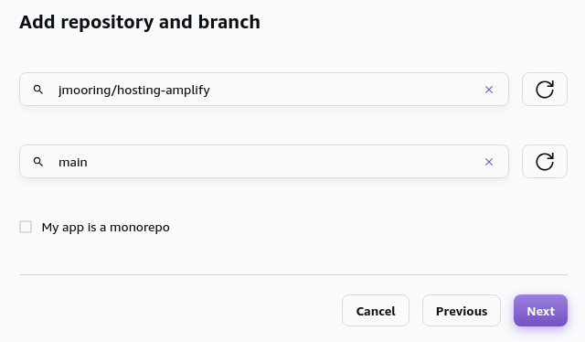 - 选择一个仓库和分支,然后按 下一步 按钮。
